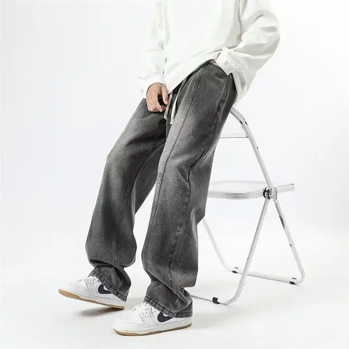 Be the first to review “Jeans Men Wide Leg Pants Denim Pant Gradation Straight Trousers Regular High Waist Splice Casual Loose Autumn Winter 2024”