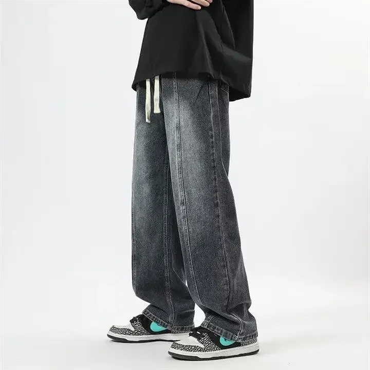 Jeans Men Wide Leg Pants Denim Pant Gradation Straight Trousers Regular High Waist Splice Casual Loose Autumn Winter 2024