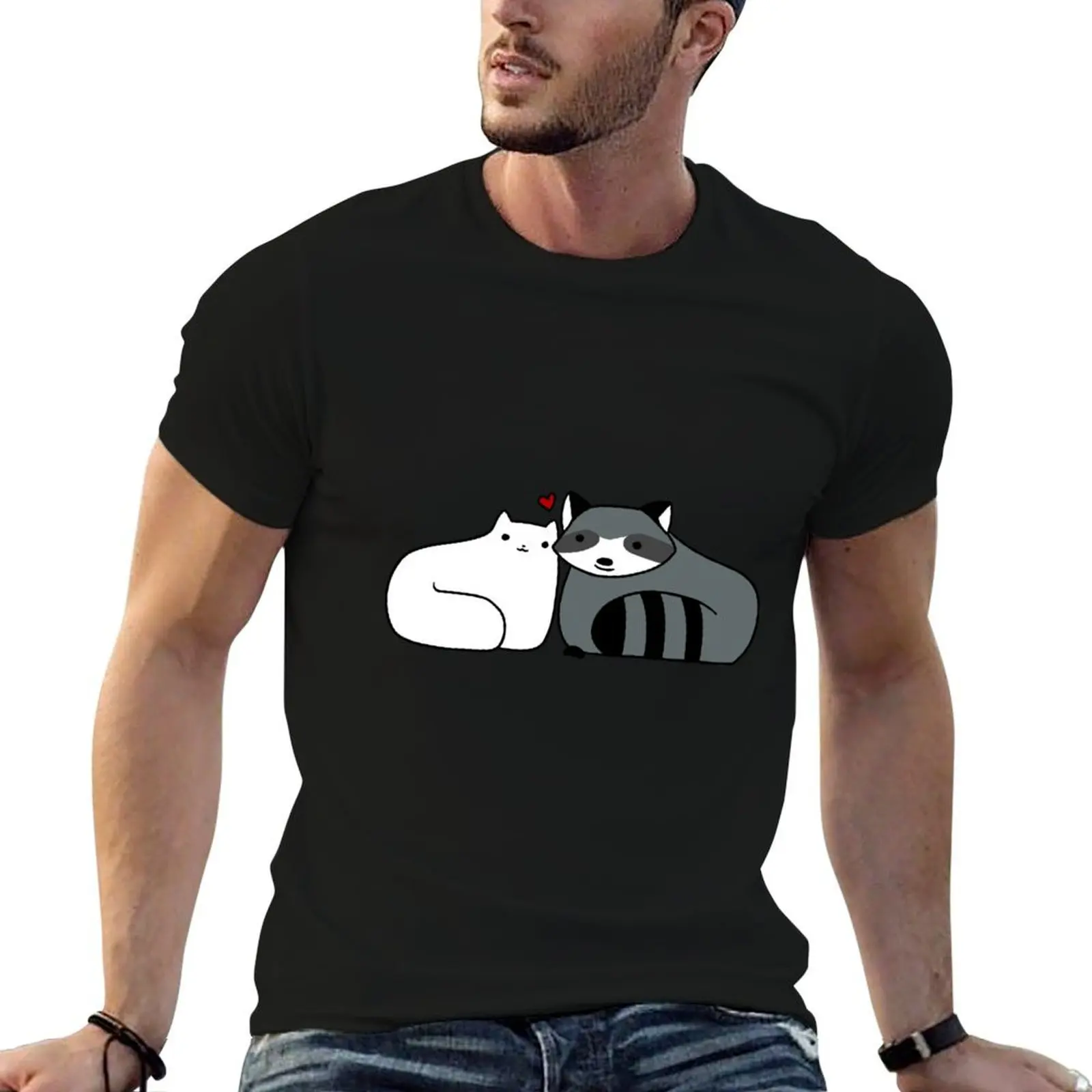 Raccoon and Cat Love T-Shirt t shirt man plain