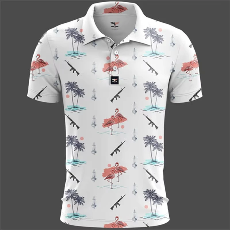 Tank Gun 3d Printed Polo Shirt For Men Funny Design Lapel Button T-shirt Vacation Casual Summer Clothes Animal Short Sleeve Tees